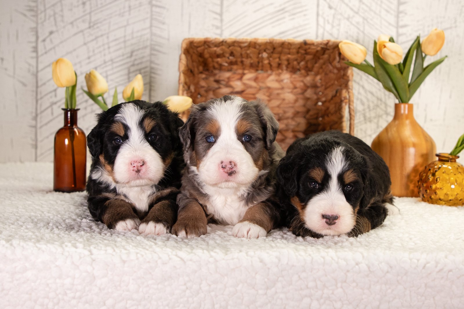 Ultra Bernedoodles! Both parents are health tested, including OFA and Genetic testing. Puppies will be up-to-date on age appropriate vaccinations and deworming and receive a veterinary health exam (with records provided). Each puppy comes with a 2-year congenital or hereditary health guarantee.