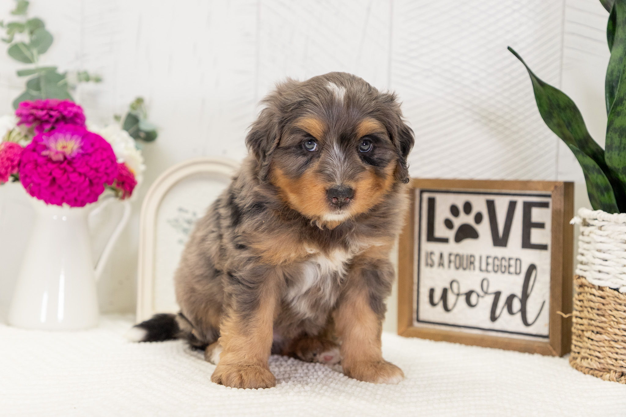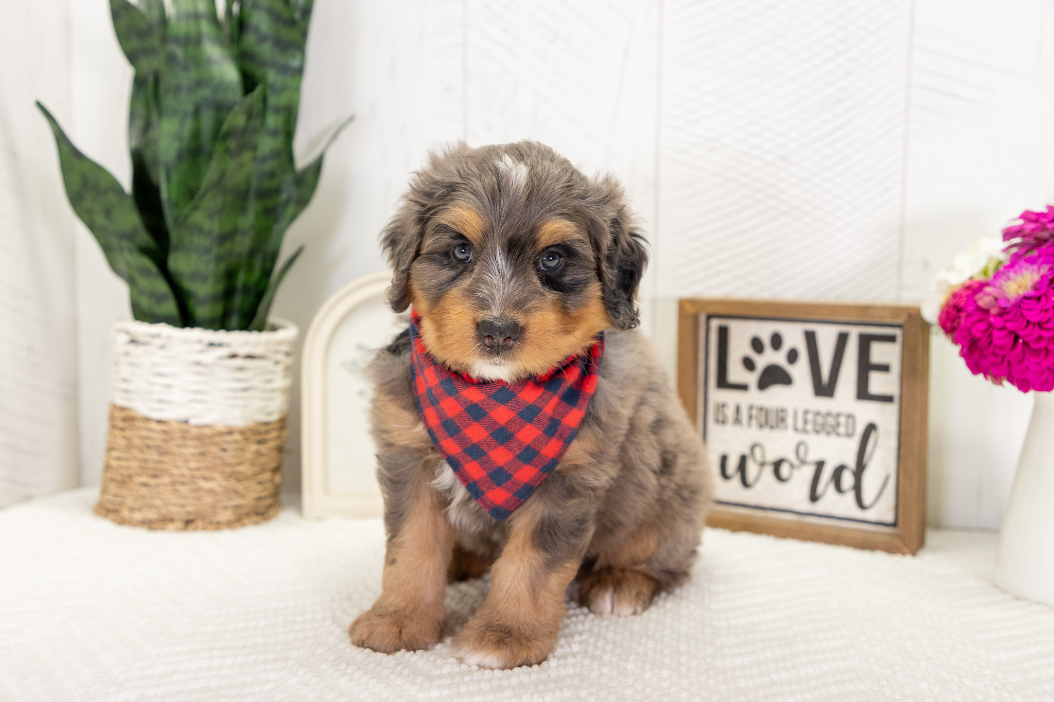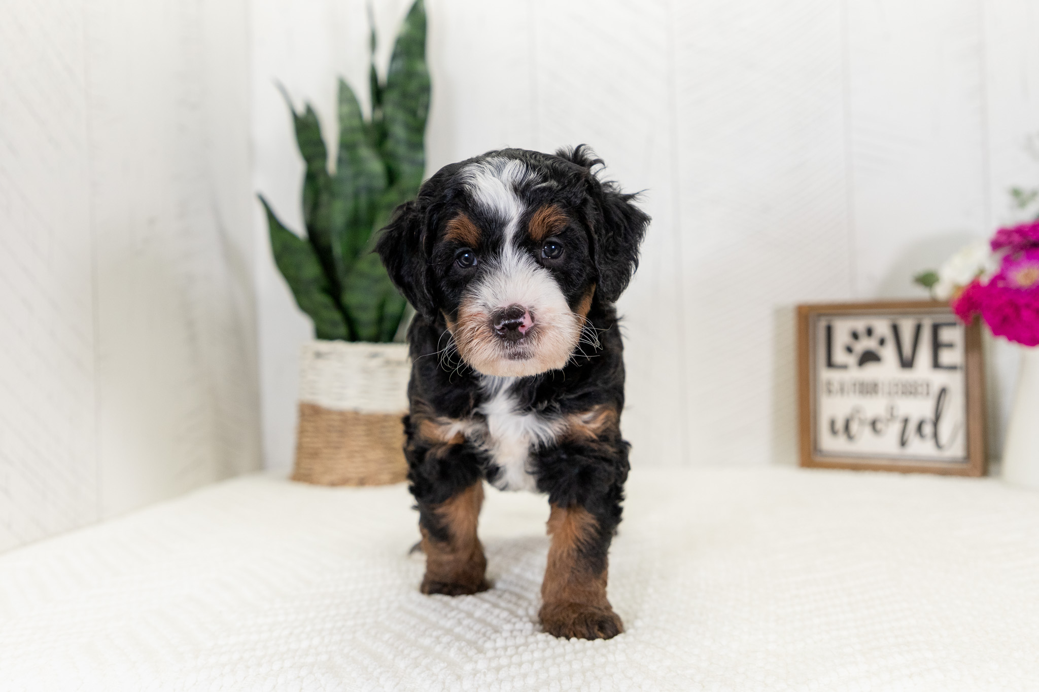 Multi-Gen Mini Bernedoodles. The father is Teddy is a Multi-Gen Bernedoodle with a happy and fun personality. His puppies inherit his soft, textured coat, making them just as charming. The mother is Penny, a friendly and well-mannered Mini Bernedoodle. Her gentle, lovable nature and sociable personality make her a joy to be around. The parents are health tested! They are OFA & Genetically tested. The puppies will be up-to-date on shots and dewormer. A current veterinary health exam on record will be provided! They will be microchipped. We will send along a blanket with the mother & littermates scent on it, a collar & leash, puppy food, treats, and a chew toy. One-year congenital or hereditary health guarantee! We can’t make any guarantees as to what each puppy will end up weighing. They will be required to be spayed/neutered.