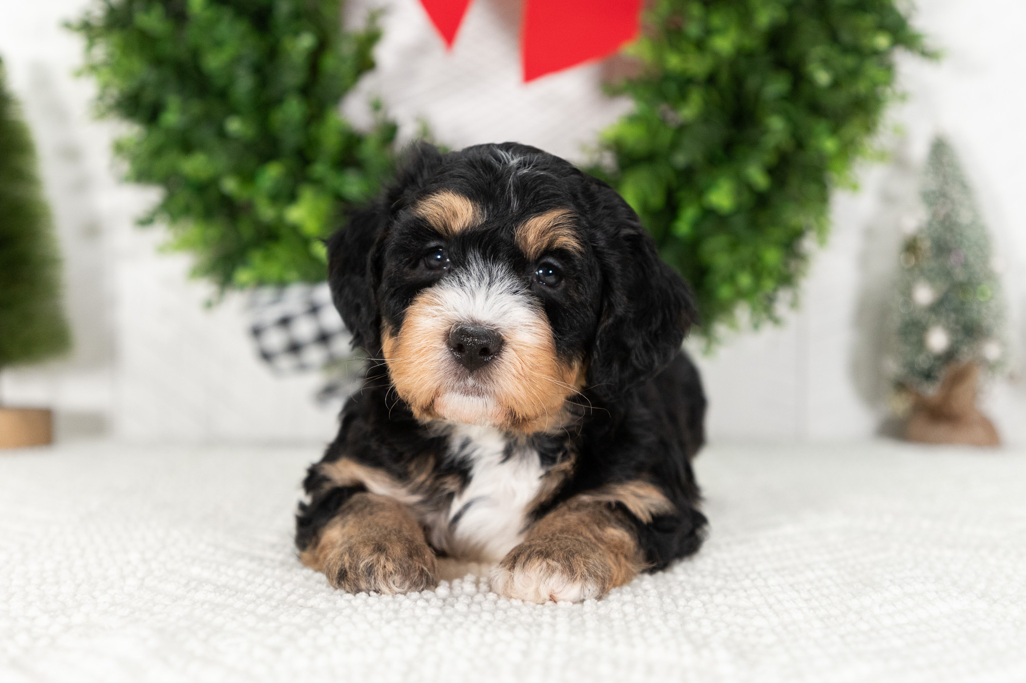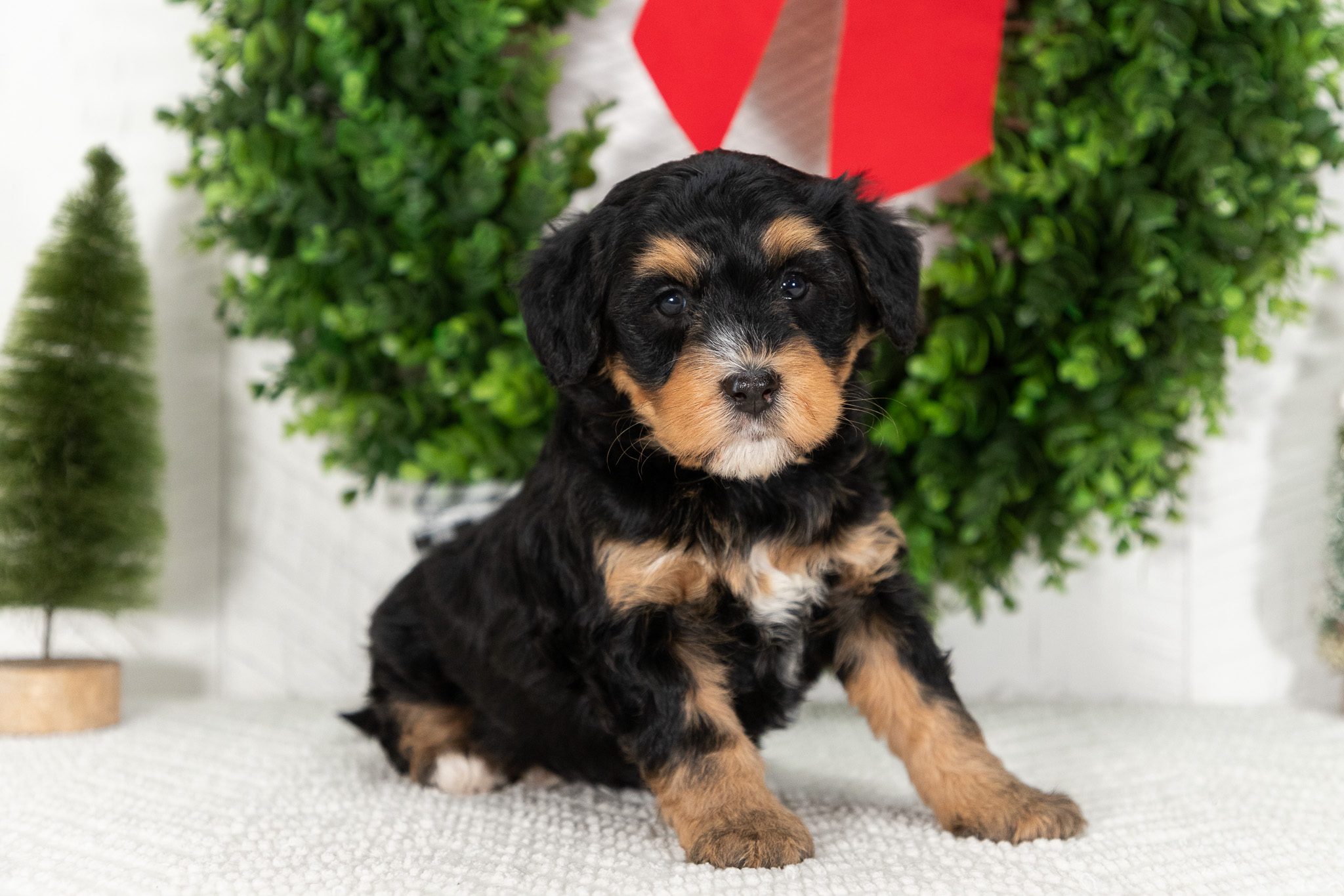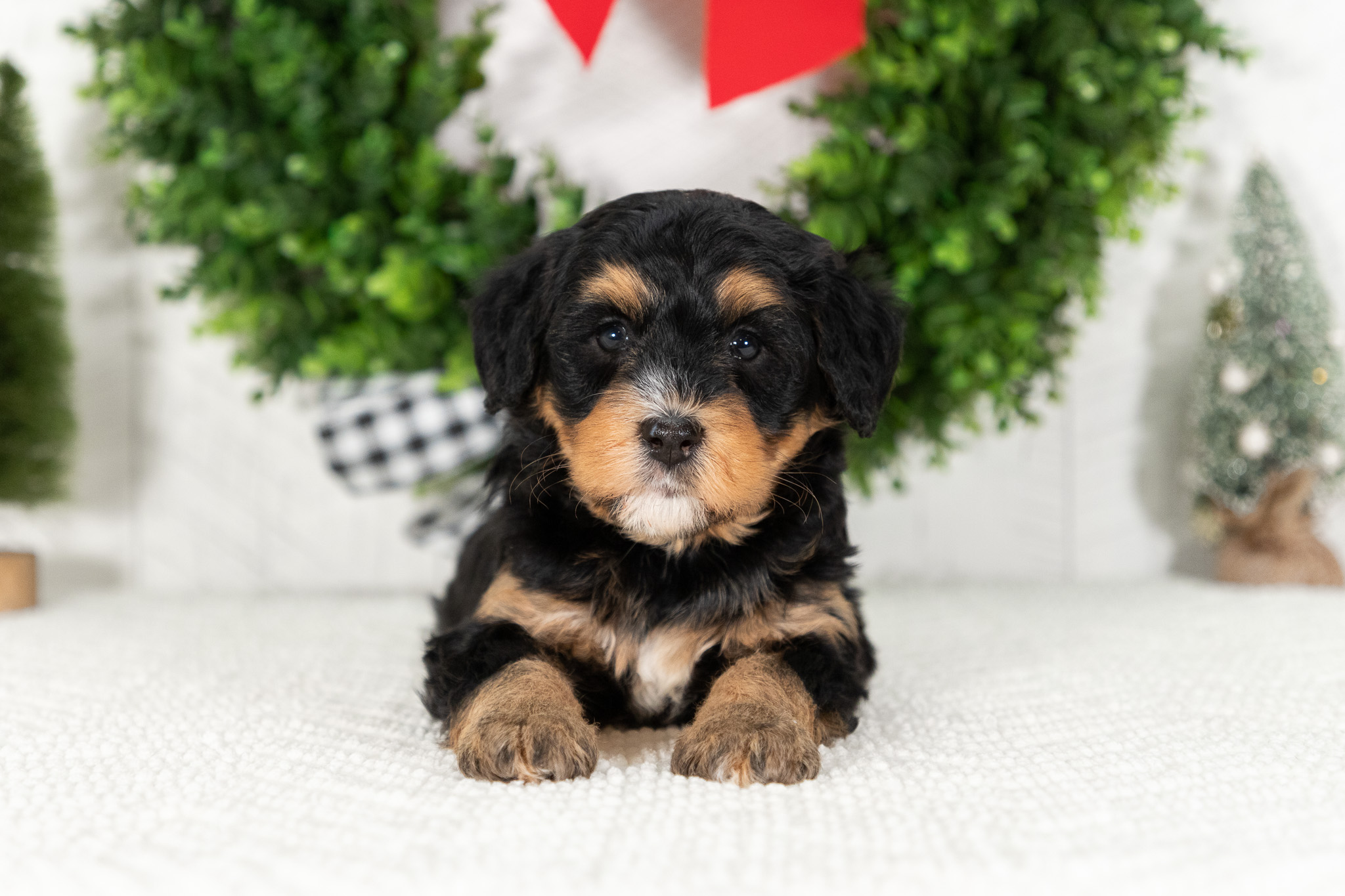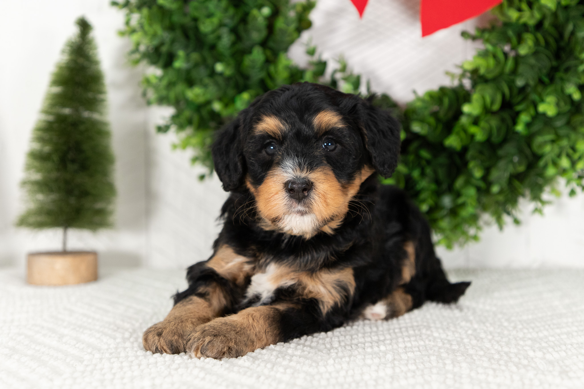 Multi-Gen Mini Bernedoodles. The father is Teddy is a Multi-Gen Bernedoodle with a happy and fun personality. His puppies inherit his soft, textured coat, making them just as charming. The mother is Penny, a friendly and well-mannered Mini Bernedoodle. Her gentle, lovable nature and sociable personality make her a joy to be around. The parents are health tested! They are OFA & Genetically tested. The puppies will be up-to-date on shots and dewormer. A current veterinary health exam on record will be provided! They will be microchipped. We will send along a blanket with the mother & littermates scent on it, a collar & leash, puppy food, treats, and a chew toy. 2-year congenital or hereditary health guarantee! We can’t make any guarantees as to what each puppy will end up weighing. They will be required to be spayed/neutered.