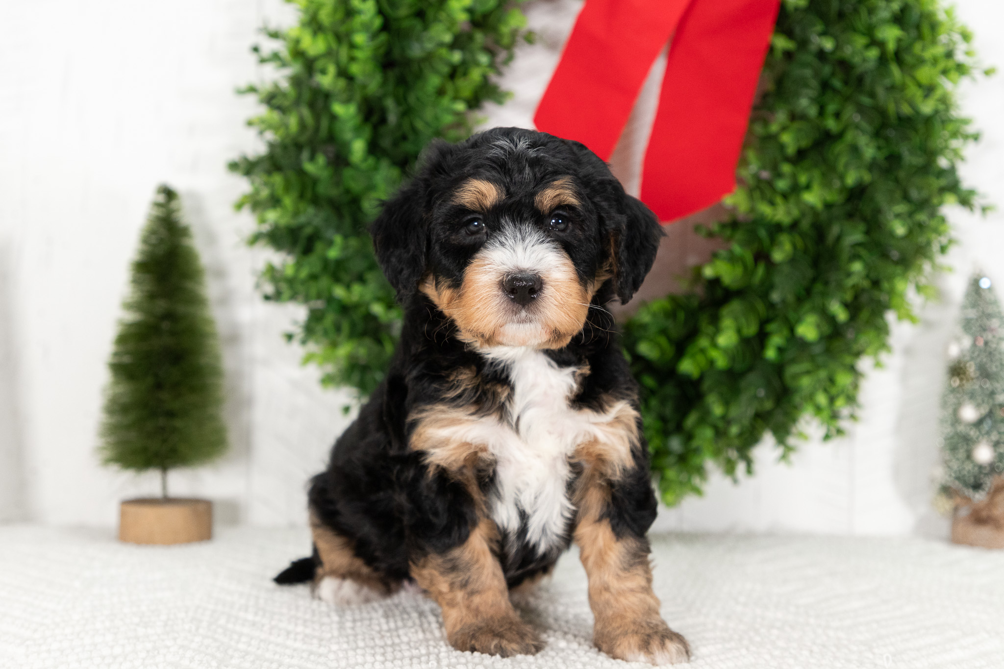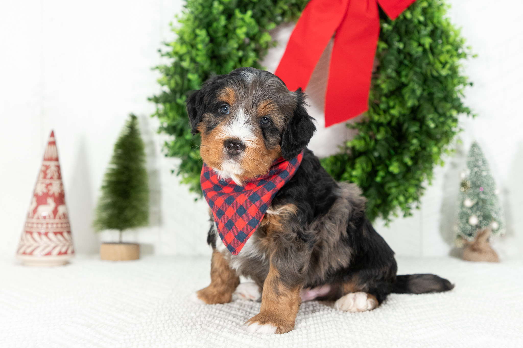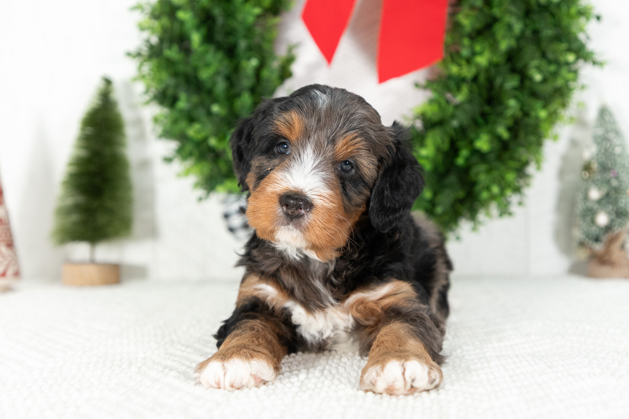 Multi-Gen Mini Bernedoodles. The father is Teddy is a Multi-Gen Bernedoodle with a happy and fun personality. His puppies inherit his soft, textured coat, making them just as charming. The mother is Penny, a friendly and well-mannered Mini Bernedoodle. Her gentle, lovable nature and sociable personality make her a joy to be around. The parents are health tested! They are OFA & Genetically tested. The puppies will be up-to-date on shots and dewormer. A current veterinary health exam on record will be provided! They will be microchipped. We will send along a blanket with the mother & littermates scent on it, a collar & leash, puppy food, treats, and a chew toy. 2-year congenital or hereditary health guarantee! We can’t make any guarantees as to what each puppy will end up weighing. They will be required to be spayed/neutered.