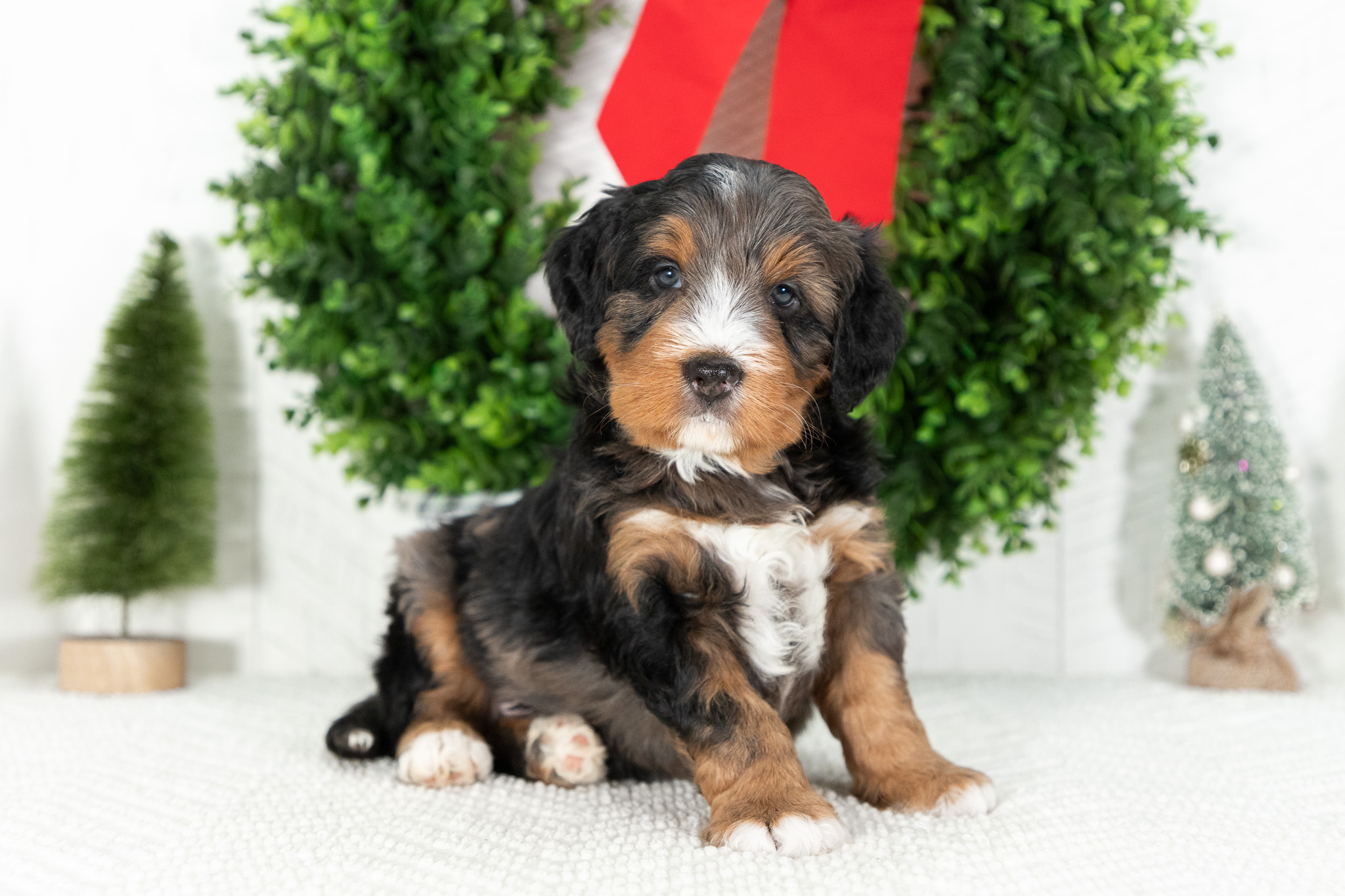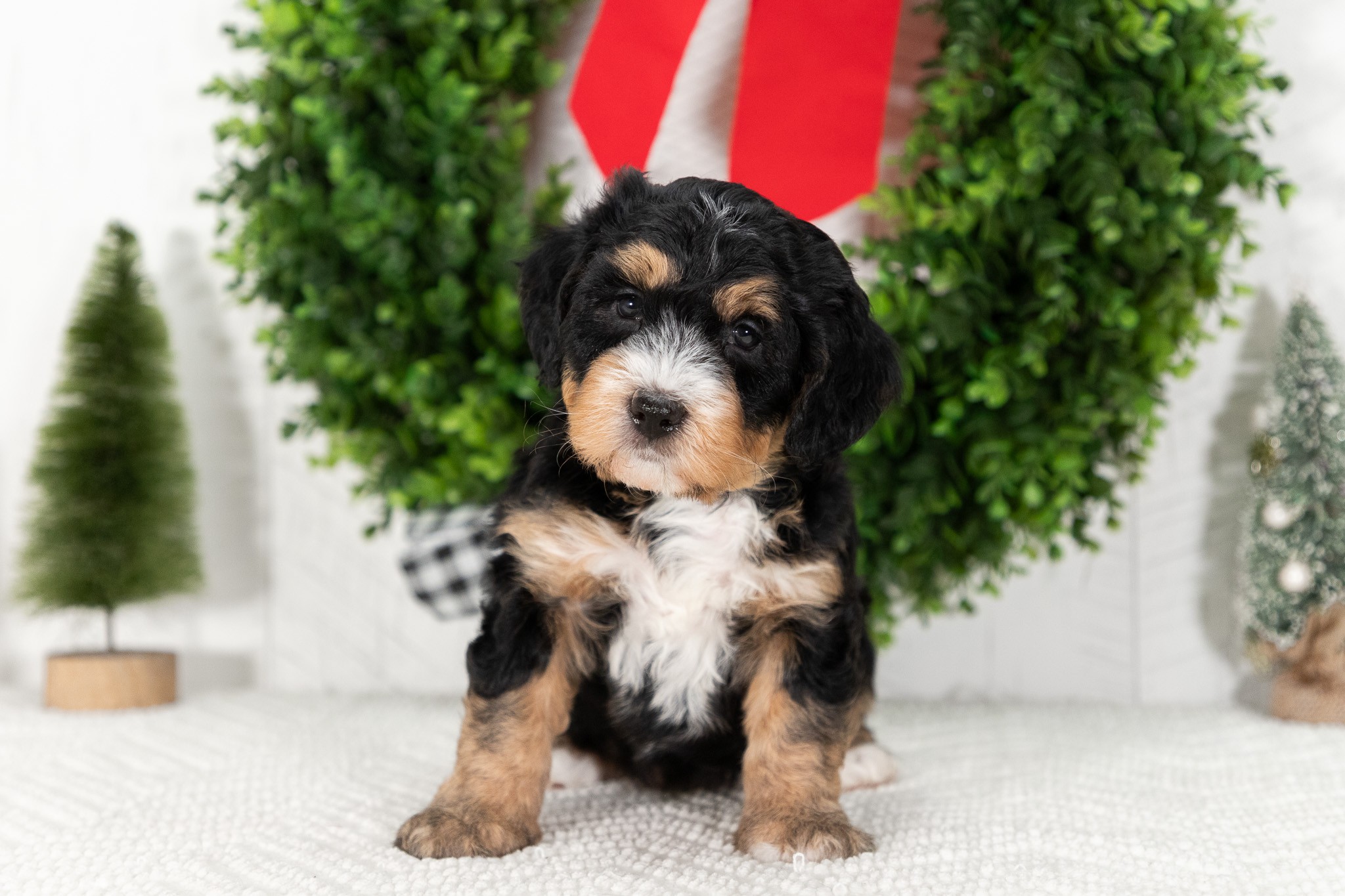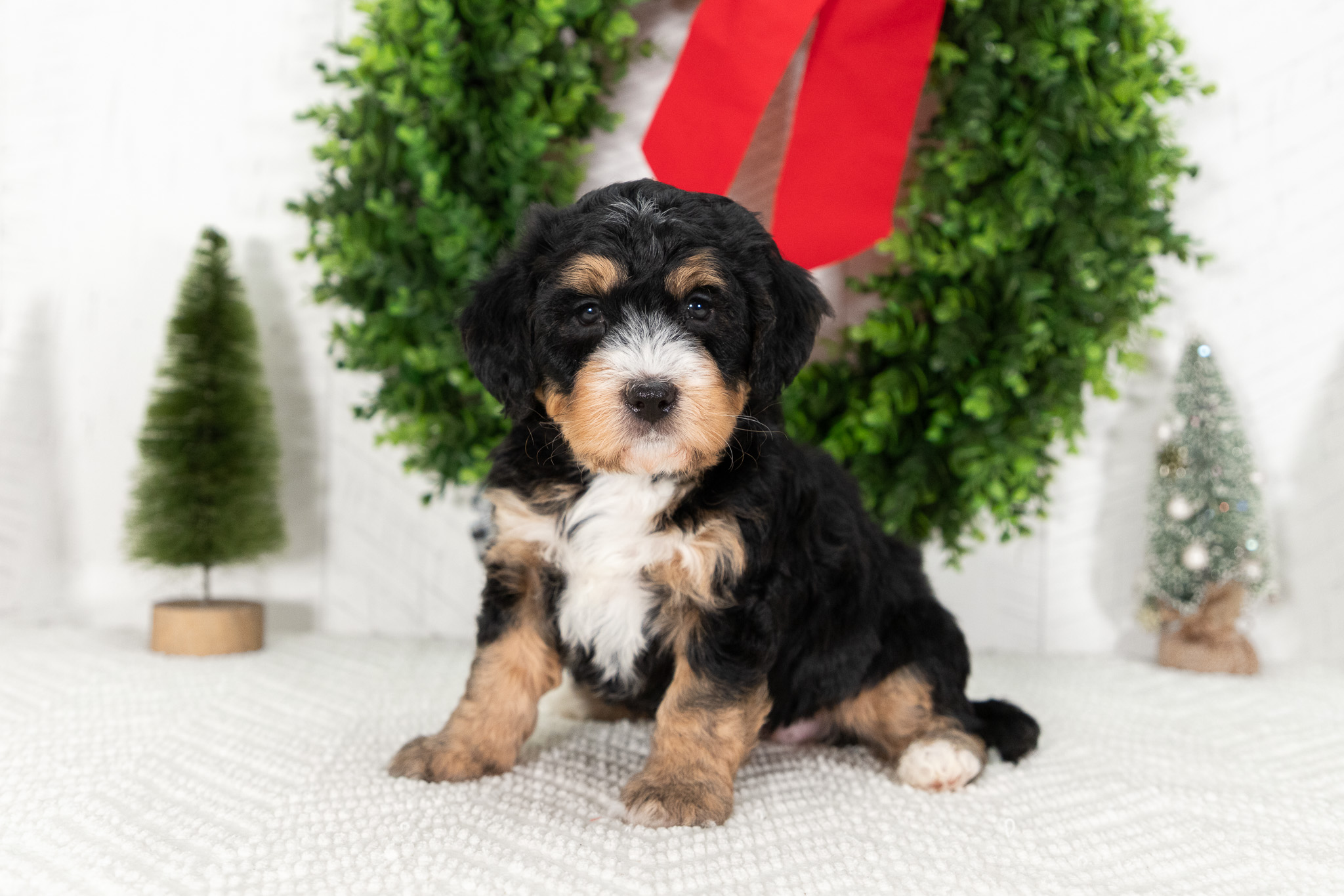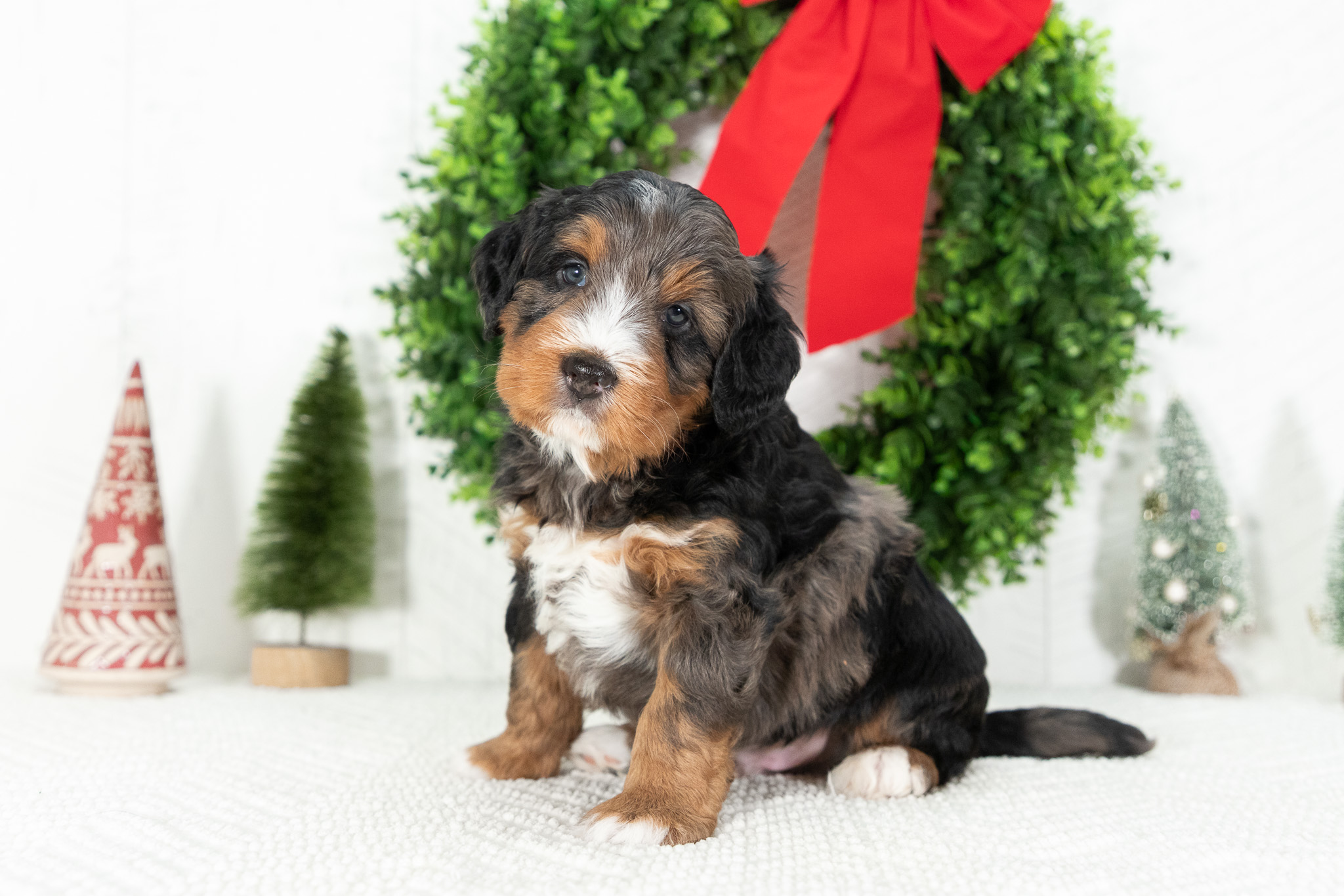 Multi-Gen Mini Bernedoodles. The father is Teddy is a Multi-Gen Bernedoodle with a happy and fun personality. His puppies inherit his soft, textured coat, making them just as charming. The mother is Penny, a friendly and well-mannered Mini Bernedoodle. Her gentle, lovable nature and sociable personality make her a joy to be around. The parents are health tested! They are OFA & Genetically tested. The puppies will be up-to-date on shots and dewormer. A current veterinary health exam on record will be provided! They will be microchipped. We will send along a blanket with the mother & littermates scent on it, a collar & leash, puppy food, treats, and a chew toy. 2-year congenital or hereditary health guarantee! We can’t make any guarantees as to what each puppy will end up weighing. They will be required to be spayed/neutered.