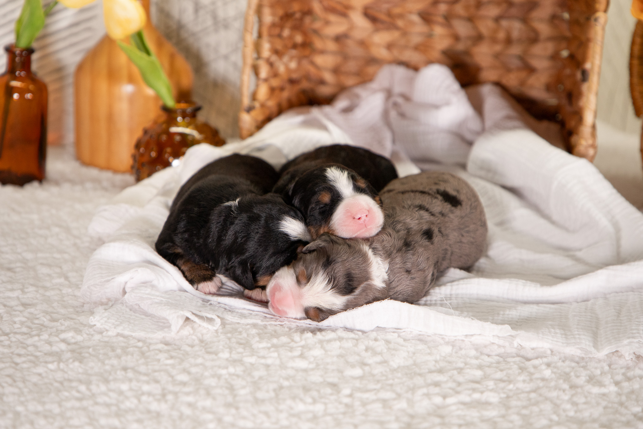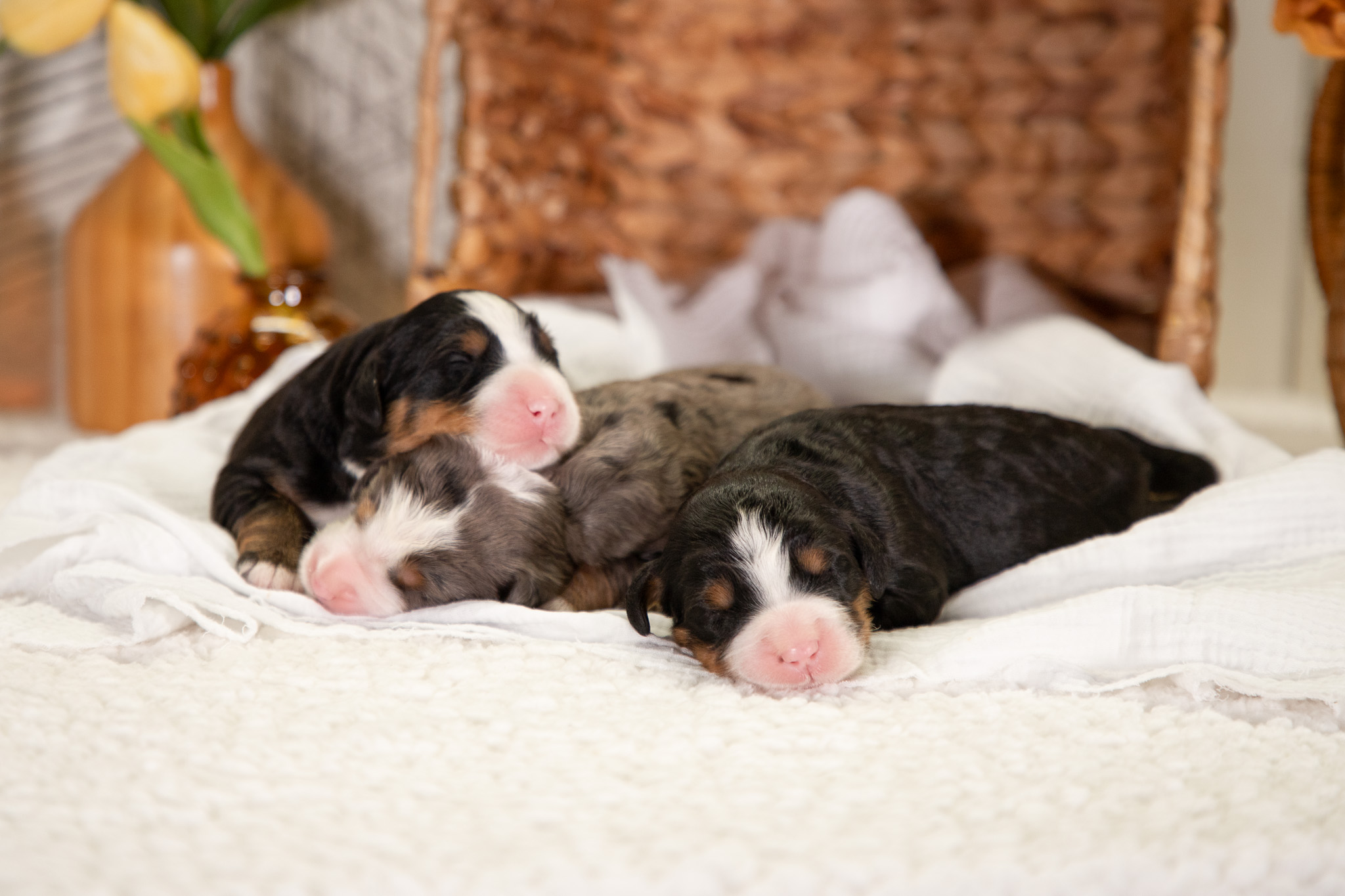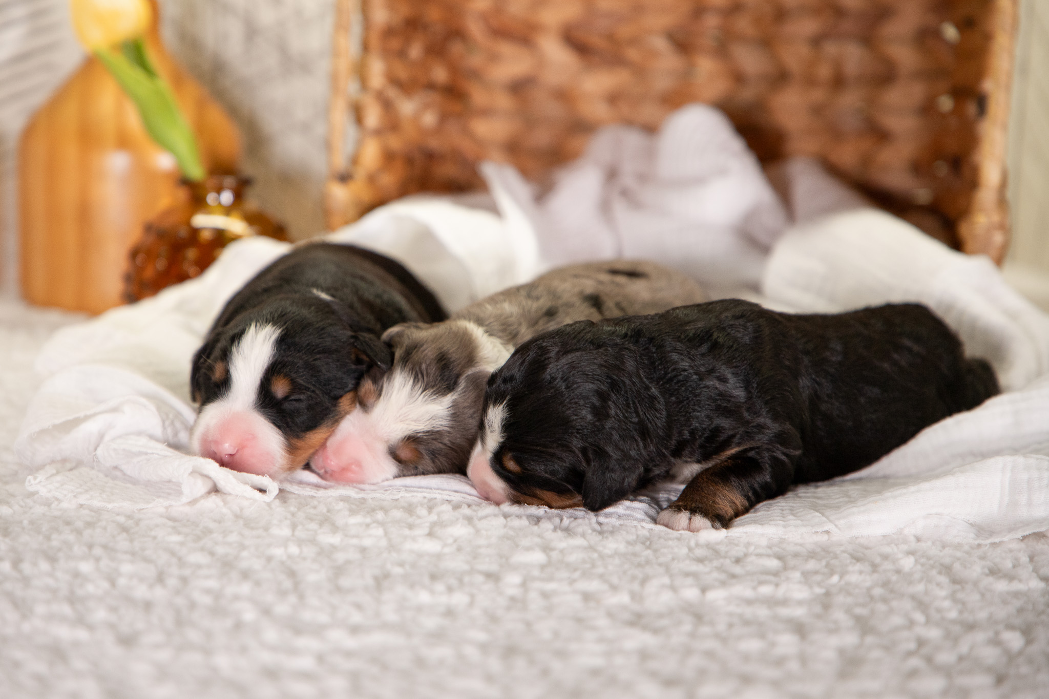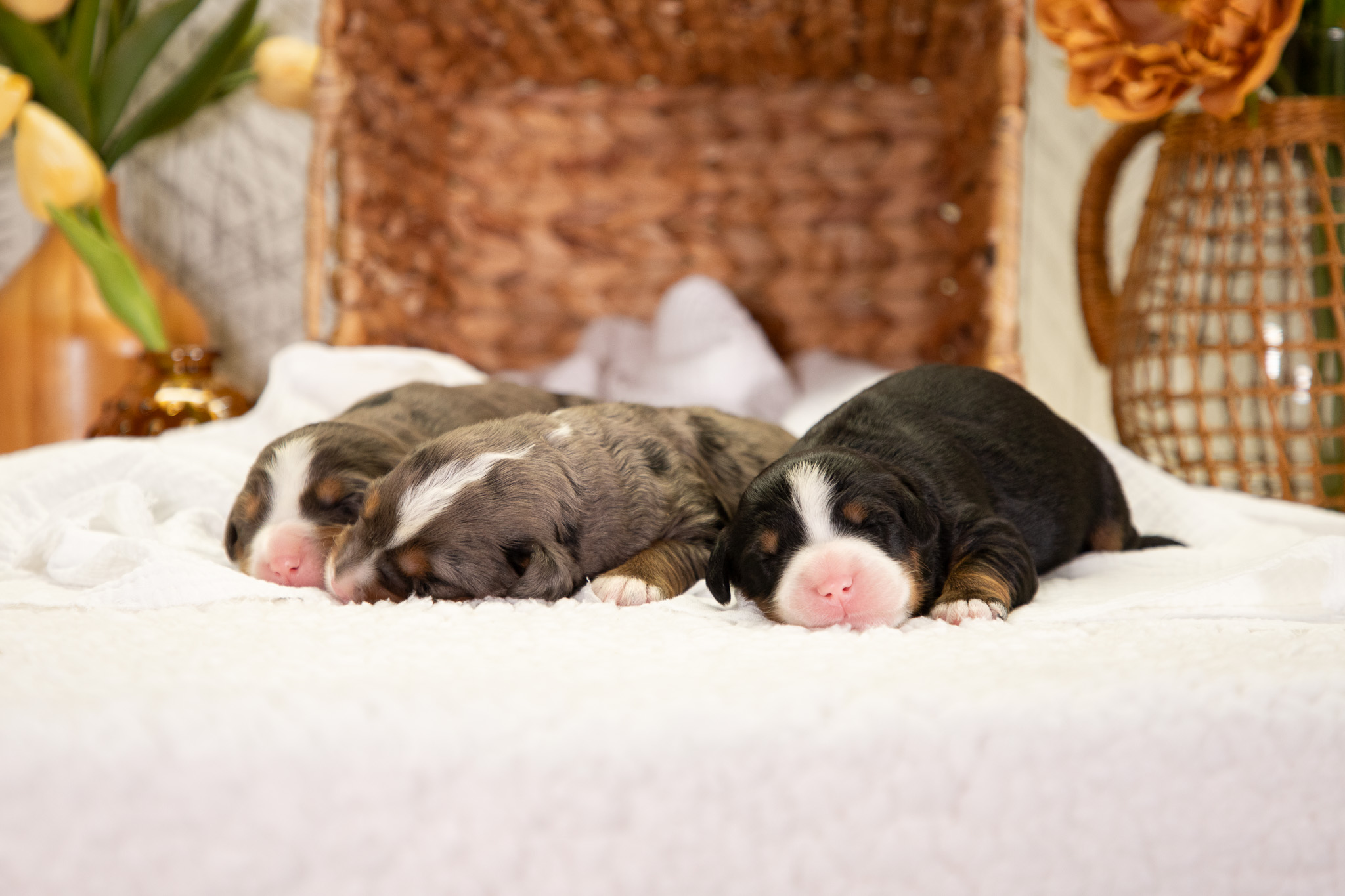 Ultra Bernedoodles! Both parents are health tested, including OFA and Genetic testing. Puppies will be up-to-date on age appropriate vaccinations and deworming and receive a veterinary health exam (with records provided). Each puppy comes with a 2-year congenital or hereditary health guarantee.