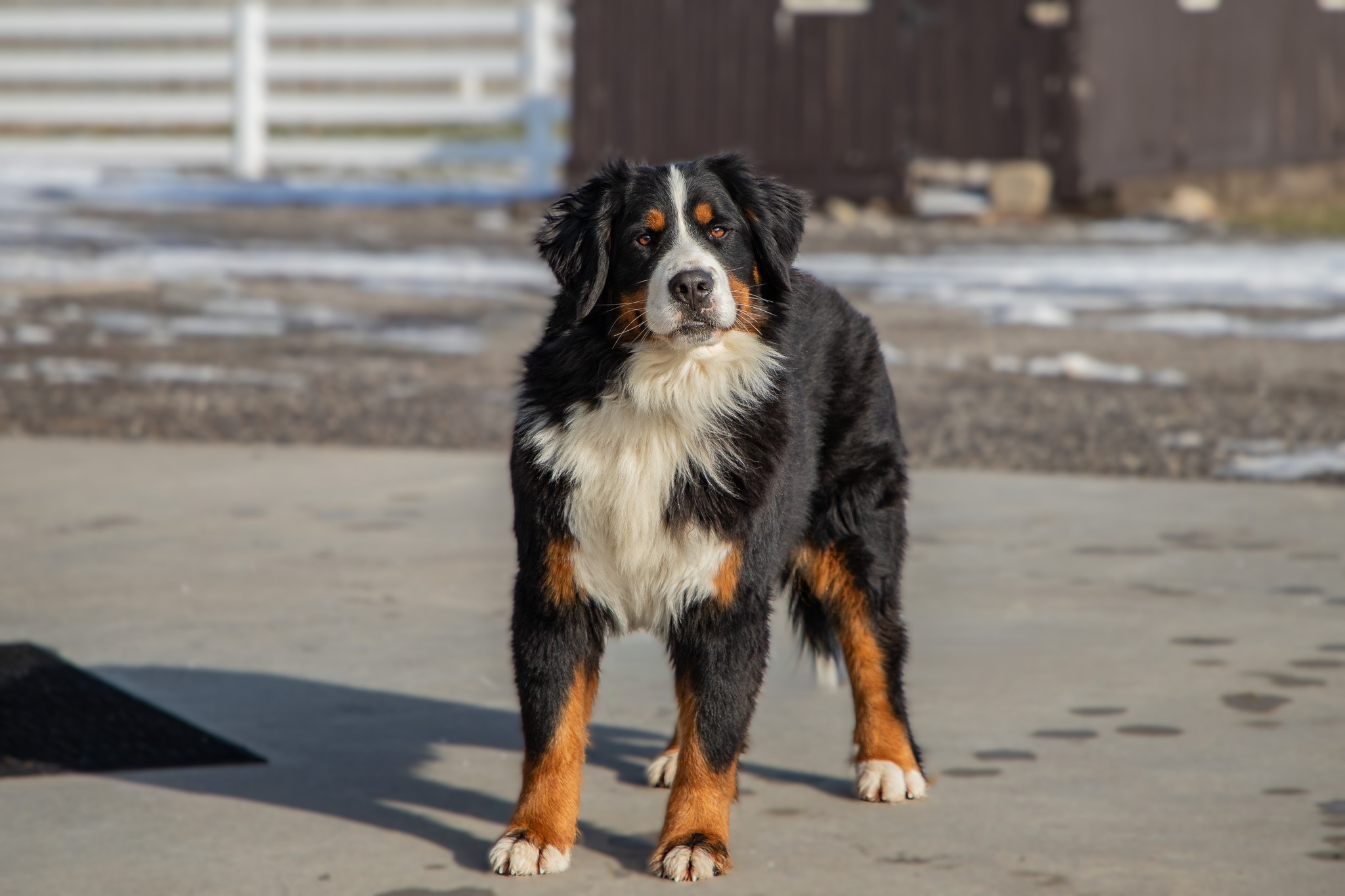 Joy is a sweet, affectionate Bernese Mountain Dog with an excellent structure. She comes from imported Russian champion bloodlines, adding both beauty and strong genetics to our breeding program.